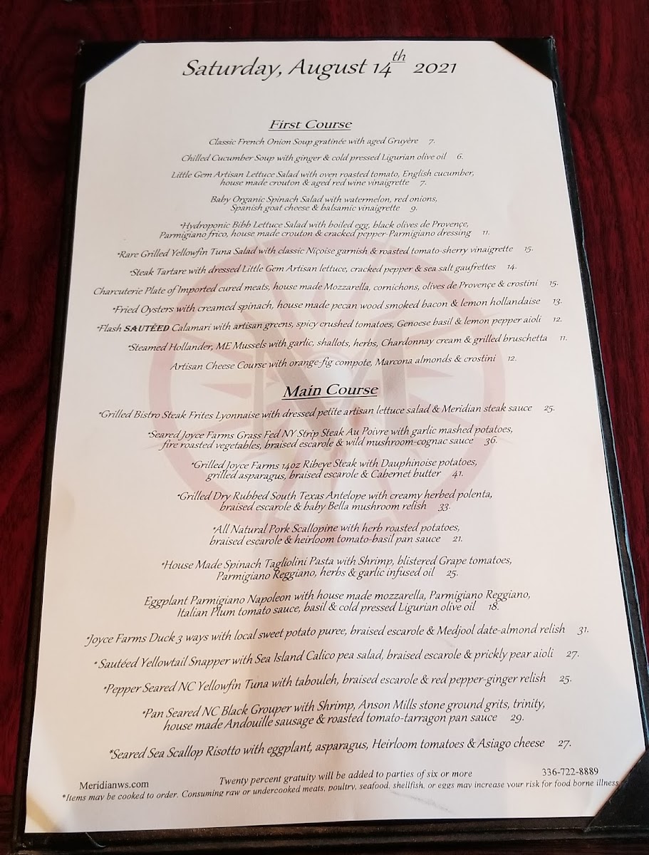 Welcome to Meridian Restaurant, a culinary gem nestled in Winston-Salem that promises an outstanding dining experience. Located at 411 S Marshall St, this restaurant captivates with a menu that changes daily, ensuring that every visit is a new adventure in flavors.